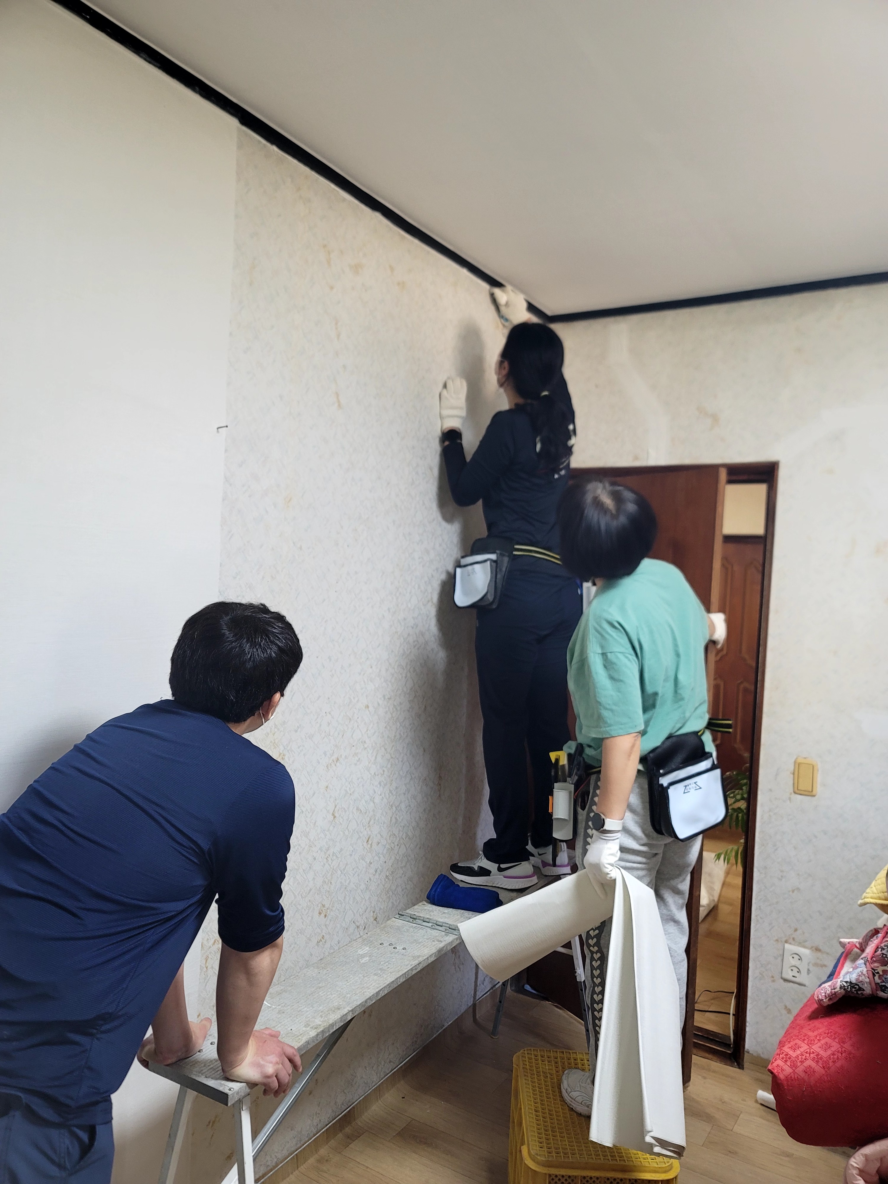 전문봉사자 양성 아카데미 도배반 현장에서 학습진행