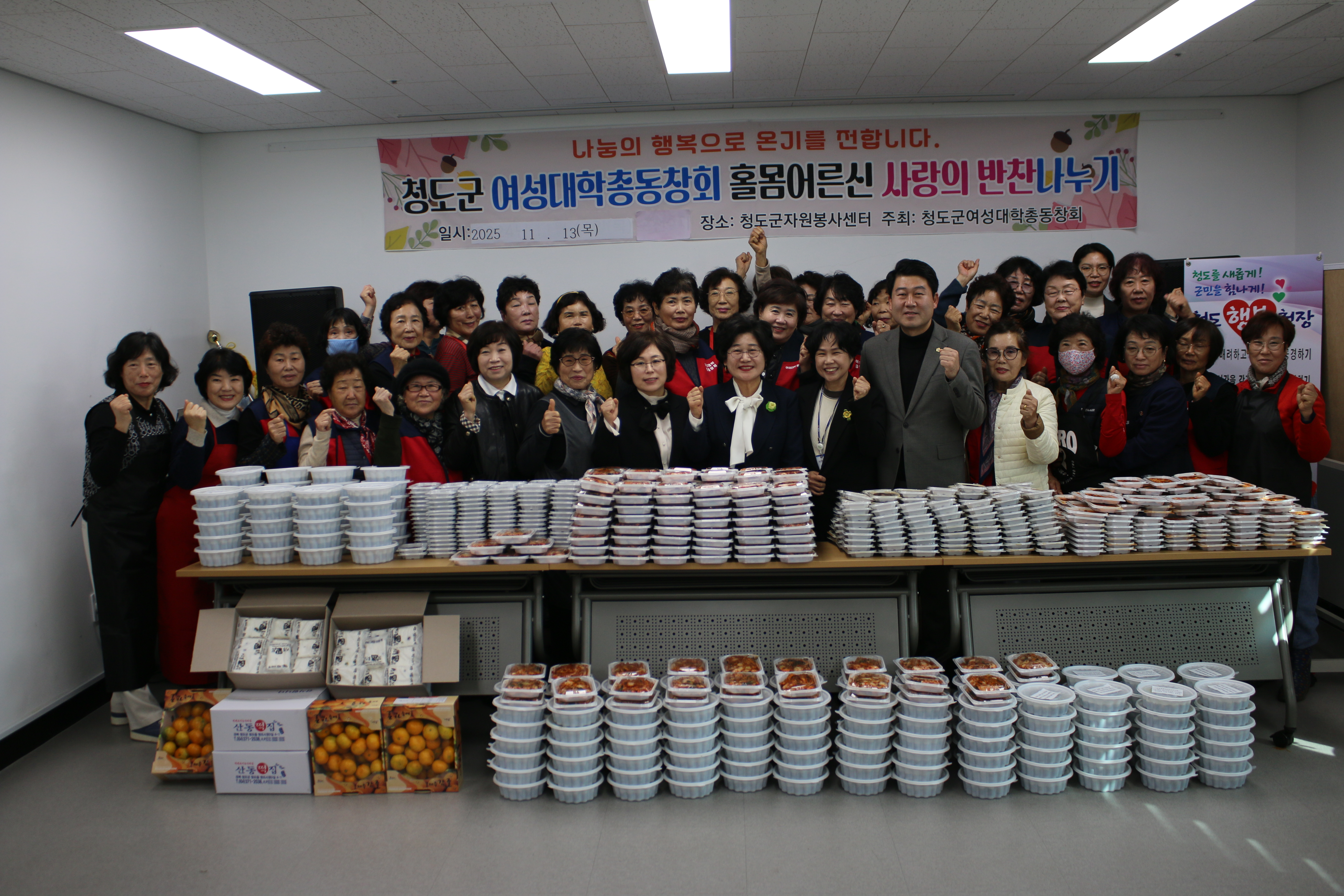 1.(2025.11.13)청도군여성대학총동창회 '홀몸어르신 사랑의 반찬 나누기' 나눔의 행복으로 온기를 전합니다!2.(2025.11.13)청도군여성대학총동창회 '홀몸어르신 사랑의 반찬 나누기' 나눔의 행복으로 온기를 전합니다!